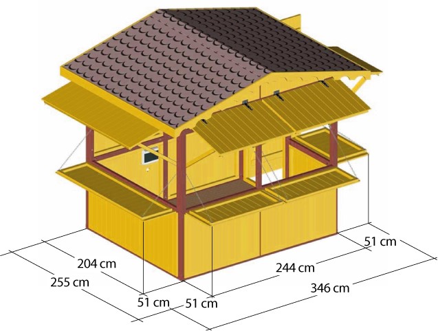 - Zaproponowana aranżacja domku handlowego lub zdjęcie stoiska z innych wydarzeń