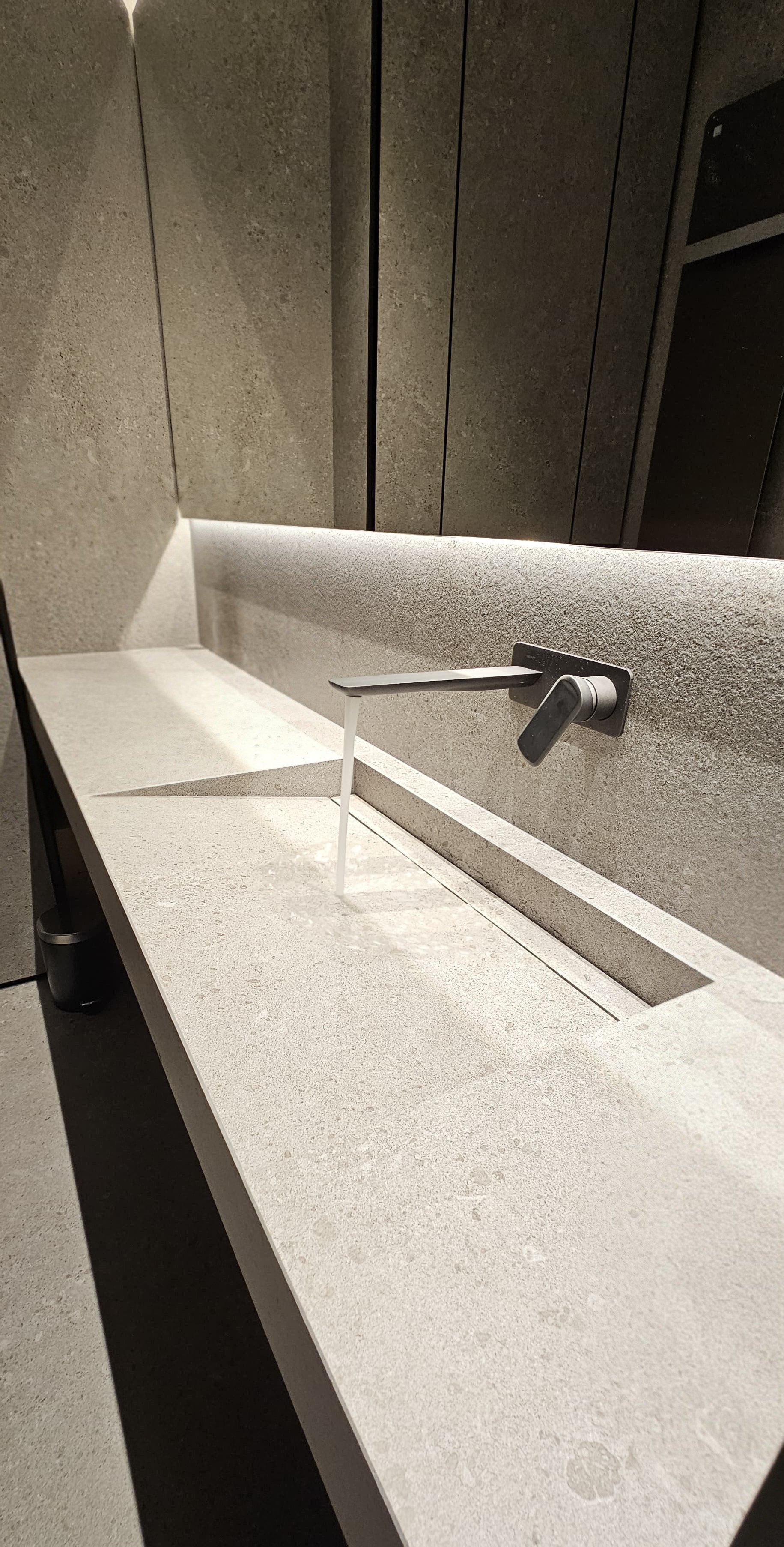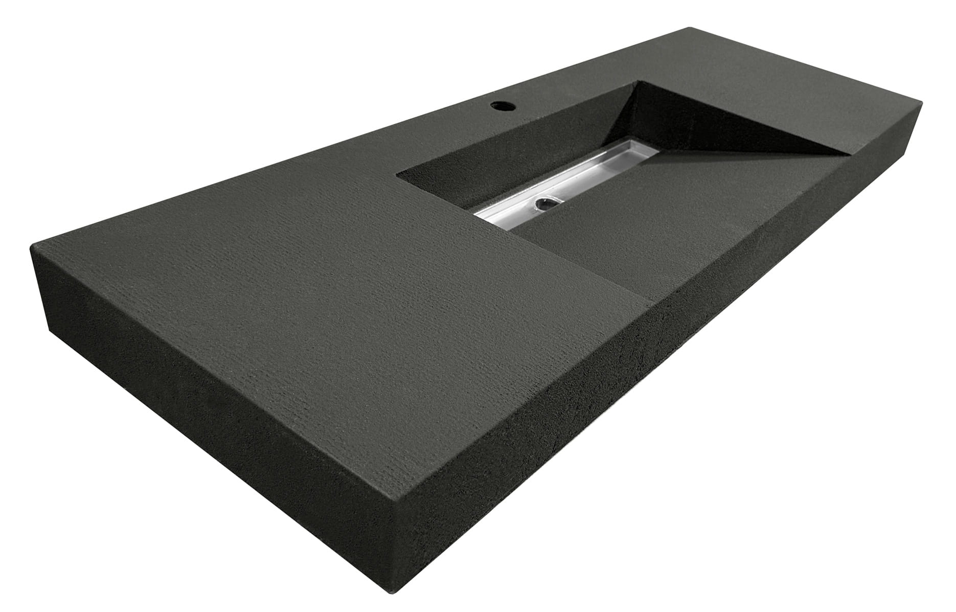 umywalki zintegrowane z blatem z aluminiowym odpływem liniowym, przeznaczone do